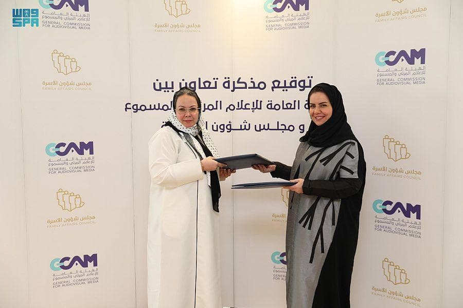 وقعت الهيئة العامة للإعلام المرئي والمسموع ومجلس شؤون الأسرة مذكرة تفاهم لموائمة المبادرات الإستراتيجية الوطنية للأسرة مع مبادرات الهيئة والعمل على توسيع نطاق العمل من خلال المبادرات الجديدة وتصميمها وتنفيذها.وتنص المذكرة التي وقعتها الرئيس التنفيذي للهيئة العامة للإعلام المرئي والمسموع إسراء عسيري، والأمين العام لمجلس شؤون الأسرة الدكتورة هلا التويجري،على تشكيل فريق من الطرفين يتم من خلاله تحديد الأدوار والمسؤوليات والحوكمة للمبادرات بجميع حالاتها، وتقديم الدعم اللازم لتصميم المبادرات ومفهومها وتنفيذها عبر قنواته المختلفة مثل مشاركة الخبراء أو التوعية.وتهدف إلى التعاون في تناول معايير التصنيف العمري والمحتوى الإعلامي للأفلام السينمائية والألعاب الإلكترونية والتركيز على المحتوى الموجه الى الأطفال والأنظمة المتعلقة به، وذلك عن طريق المشاركة في إعداد ورش عمل تتولي هذه الجوانب وكذلك تبادل الأبحاث والدراسات المتعلقة بالأسرة والأطفال، وتأثير وسائل التواصل الاجتماعي على الأسرة، ووضع سياسة إعلامية تتسق مع مستهدفات الاستراتيجية الوطنية للأسرة وخطة تفعيل حملات التوعية.// انتهى //